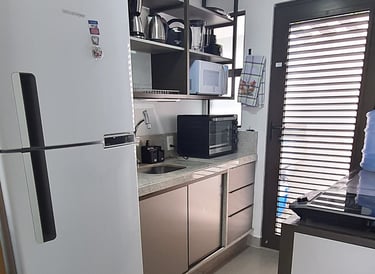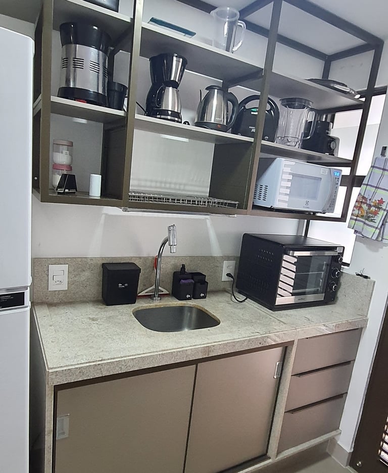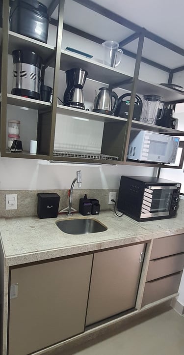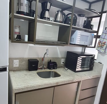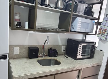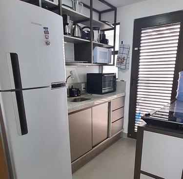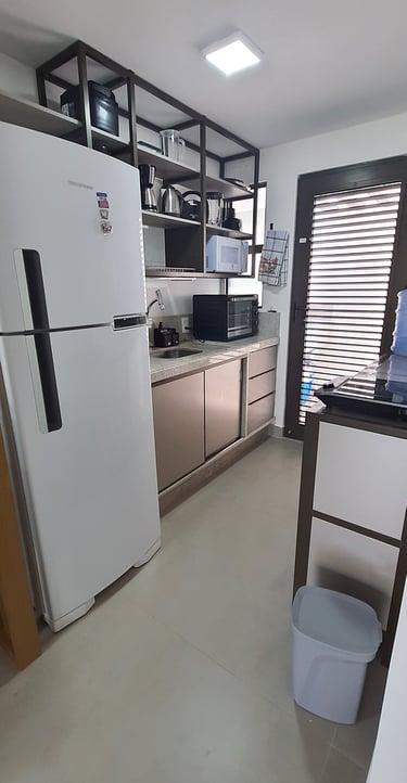 Integrada à sala, nossa cozinha proporciona um ambiente acolhedor e funcional, perfeito para quem gosta de cozinhar e estar junto, sem perder nenhum momento em família. Moderna e completa, ela é equipada com tudo que você precisa para preparar desde refeições simples até pratos mais elaborados.