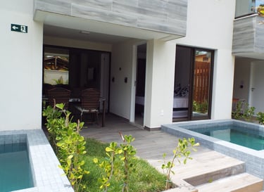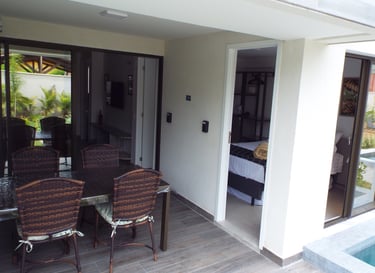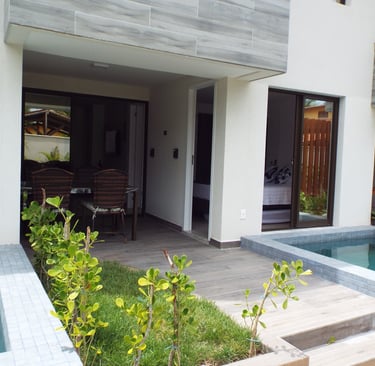 Com vista encantadora para nossa piscina privativa, a Suíte 01 é o espaço perfeito para quem busca tranquilidade, comodidade e um toque especial de aconchego. Seja para uma viagem a dois ou para momentos em família, essa suíte oferece o equilíbrio ideal entre conforto e praticidade.