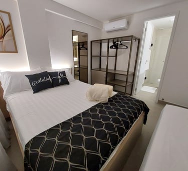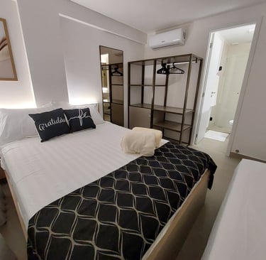 Pensada para acolher famílias e pequenos grupos com todo o conforto, a Suíte 02 é ideal para quem valoriza bem-estar e praticidade durante a estadia. Com capacidade para até 3 adultos e 1 criança, esse espaço oferece um ambiente aconchegante e funcional.