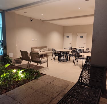 Ampla área de convivência, ideal para momentos de lazer e descanso