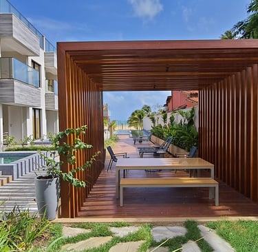 Caramanchão em madeira, um charme extra para relaxar ao ar livre